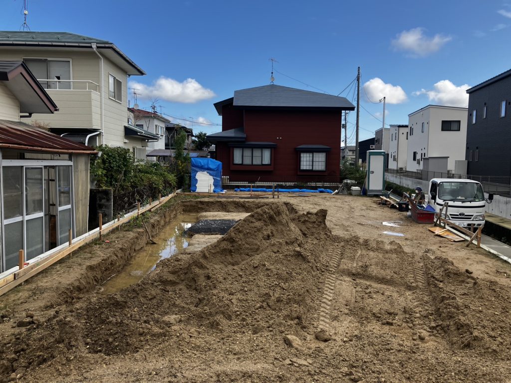 今は基礎工事の真っ只中。広々としたワンフロアがしっかり支えられるよう、丁寧に進めています。