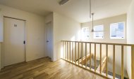 明るい2階ホール 吹抜を手摺子にして床まで光が届く、明るい2階ホールとなっています。