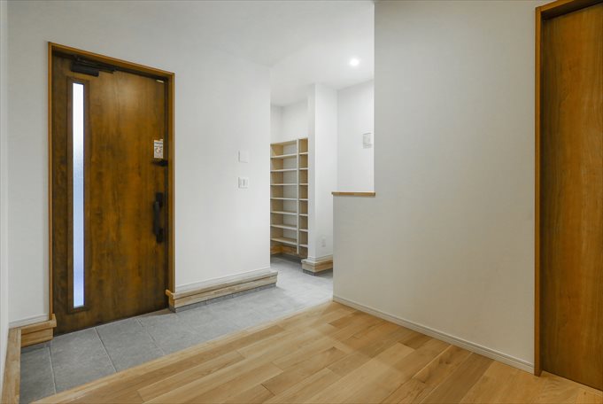 ワイドな玄関ホール 2畳のシューズクロークを奥に配し、ホールもゆったりとした広さを確保。外から帰ってきたときほっとした安心感を感じることでしょう。
